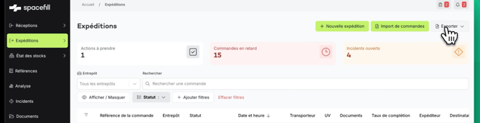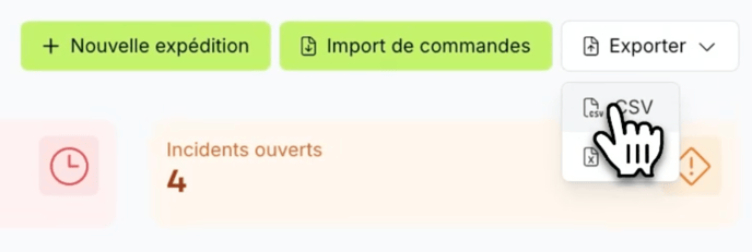 Un export de commandes peut être fait sur les expéditions et les réceptions.