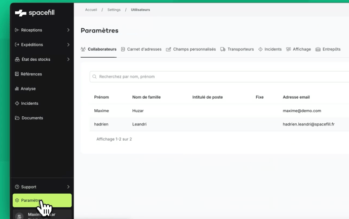 1. Allez dans "Paramètres" puis "Collaborateurs"