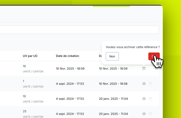Attention, vous n'avez pas la possibilité d'archiver une référence pour laquelle il y a du stock.