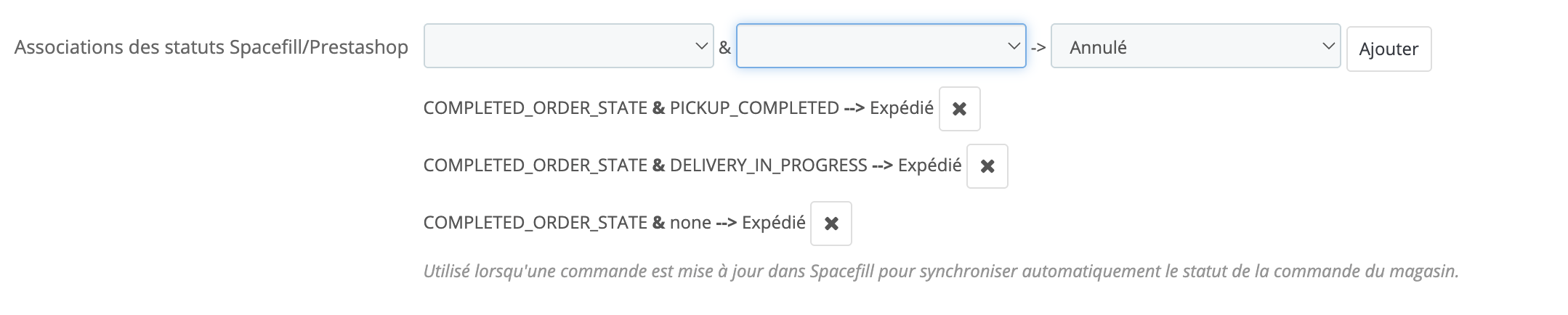Pour mapper des statuts Spacefill avec des statuts Prestashop :